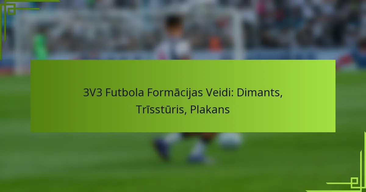 3v3 futbolā formācijas izvēle var būtiski ietekmēt komandas sniegumu laukumā. Dimanta, trīsstūra un plakano formācijas katra piedāvā unikālas priekšrocības, apmierinot dažādas stratēģiskās vajadzības. Šo formāciju izpratne var palīdzēt komandām optimizēt savu spēli, līdzsvarojot uzbrukuma un aizsardzības spējas.