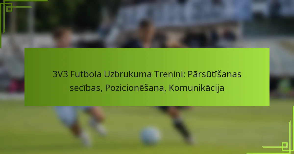 3V3 futbolā ir būtiski apgūt uzbrukuma vingrinājumus, kas koncentrējas uz piespēļu secībām, pozicionēšanu un komunikāciju, lai gūtu panākumus. Efektīvas piespēļu secības ļauj komandām saglabāt bumbu un radīt vārtu gūšanas iespējas, izmantojot koordinētas kustības. Pareiza pozicionēšana uzlabo uzbrukuma efektivitāti, radot telpu un veicinot komandas darbu, kamēr skaidra komunikācija samazina pārpratumus un uzlabo kopējo koordināciju laukumā.