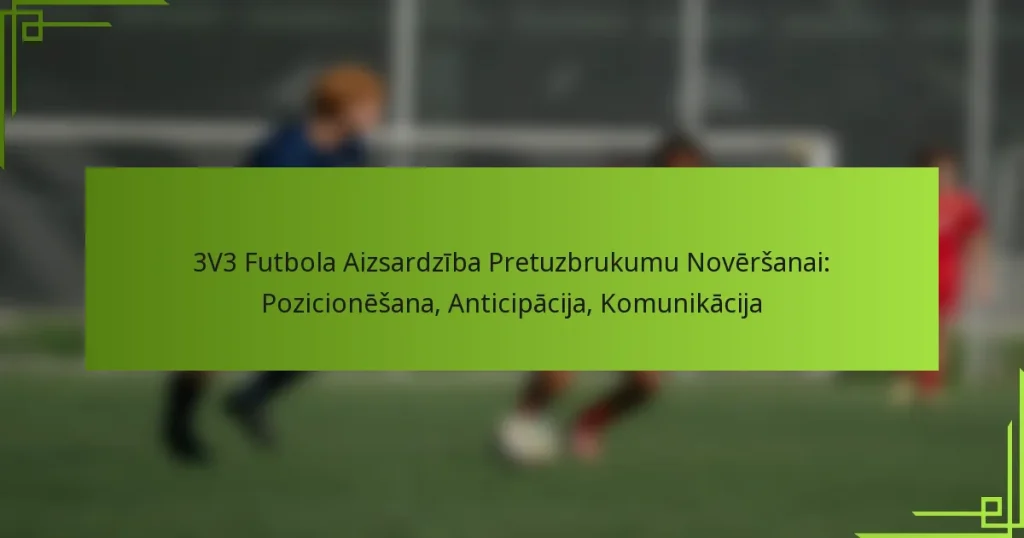 Aizsardzība pret pretuzbrukumiem 3v3 futbolā prasa stratēģisku pieeju, kas uzsver efektīvu pozicionēšanu, paredzēšanu un komunikāciju. Uzturot apziņu par spēles laukumu