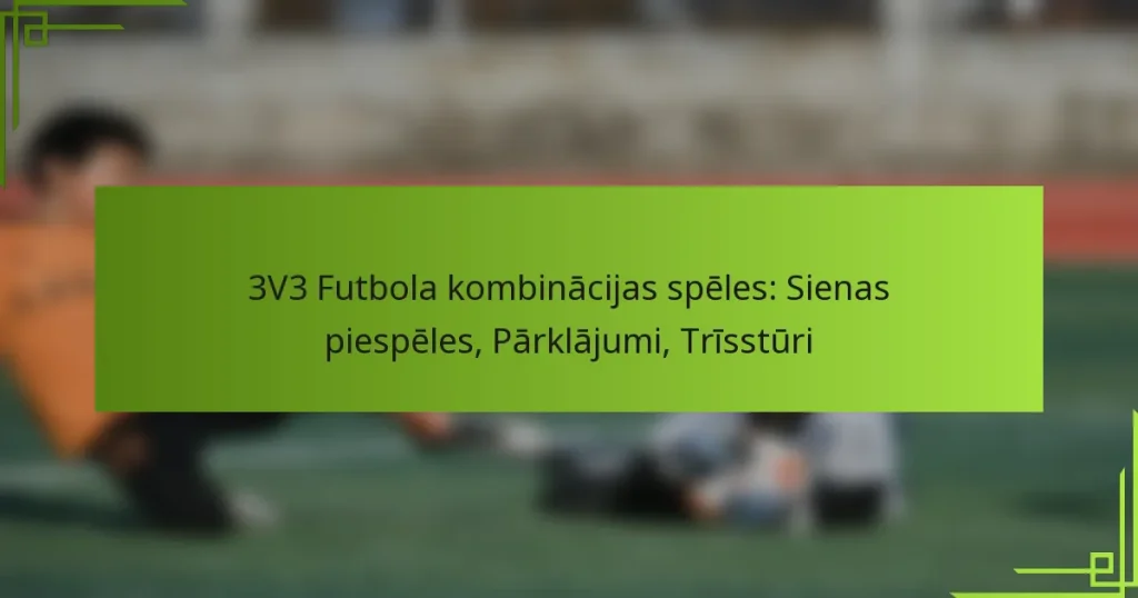 Kombinācijas spēles 3v3 futbolā ir būtiskas, lai veicinātu komandas darbu un radītu vārtu gūšanas iespējas, koordinējot spēlētāju kustības. Tehnikas, piemēram,